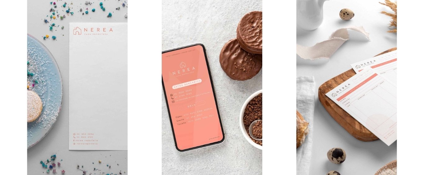 Nerea Casa Repostera es un concepto artesanal que crea postres con calidad, calidez y cuidado en cada detalle, pensado tanto para restaurantes que buscan elevar su propuesta dulce como para quienes disfrutan de sabores con esencia casera. Inspirada en el amor por la vida, la familia y la energía positiva, su identidad se refleja en cada creación. Con ellos trabajamos el desarrollo integral de su branding, dando forma a una marca cercana y auténtica, coherente con sus valores y visión.